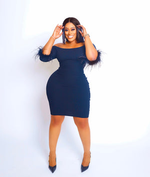 -Black Midi dress. 3/4 length Sleeves, Can be worn off-shoulders